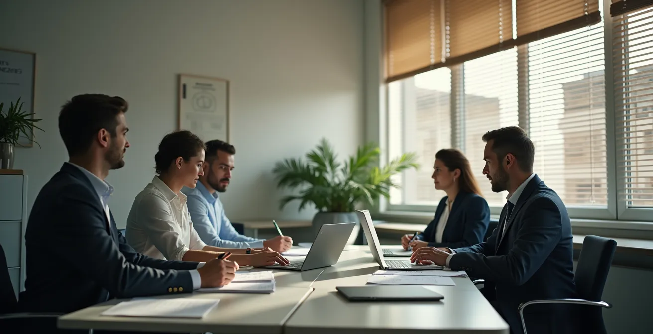 La corretta installazione di un sistema di videosorveglianza è un equilibrio delicato tra sicurezza e privacy. Questa immagine evoca simbolicamente questo bilanciamento attraverso l’interazione di luce, ombra ed elementi architettonici in un ambiente d’ufficio.